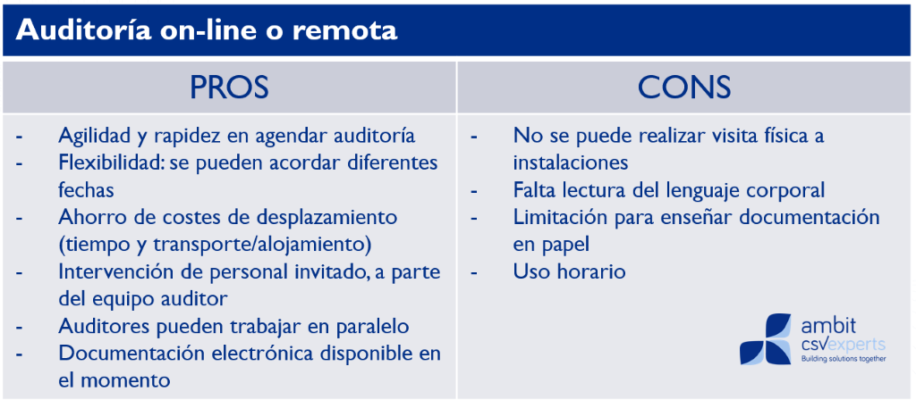 La MHRA ya advirtió a inicios de la pandemia que se debería contemplar la realización de auditorías siempre teniendo en cuenta el riesgo específico de la COVID-19, y en su blog ya apuntó a la realización de auditorías virtuales o en remoto, desde la oficina.
